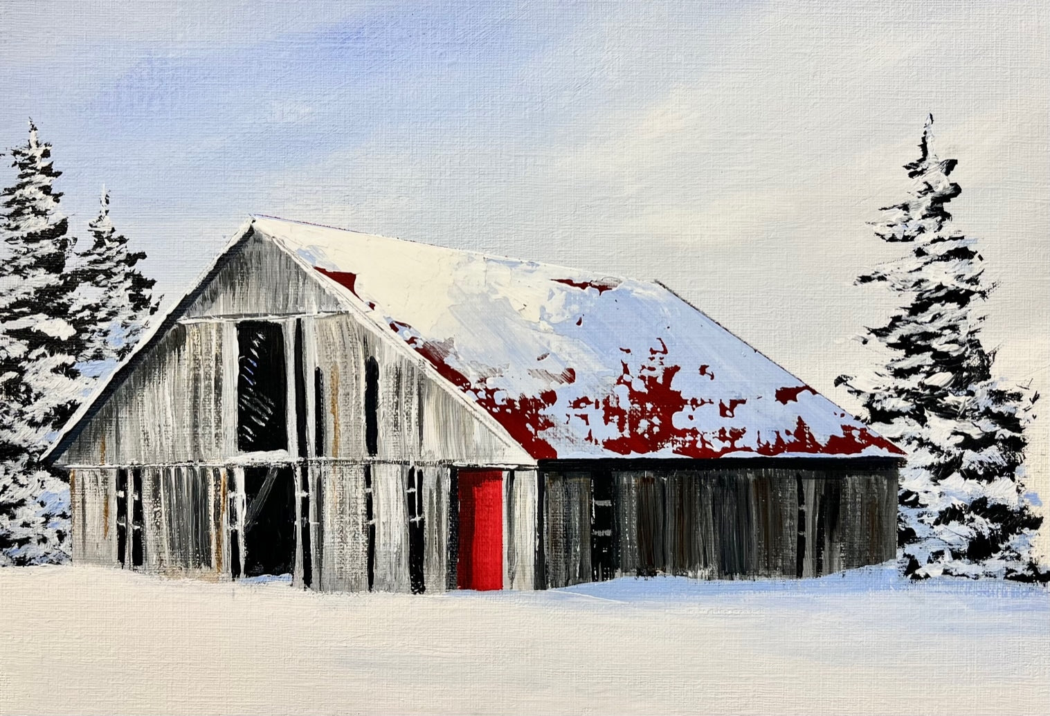 This beautiful winter barn can be painted in just a few hours. It is a 9x12" acrylic painting that even a beginner can finish. I will show you step by step how to complete this beauty and teach you a few tricks of the trade to accomplish that beautiful barnboard finish. Lots of brushes, palette knives and paint are included in this kit. Everything you need is included to complete the painting. Barns are one of my "signature" paintings and I love sharing with you how I paint these beautiful, historic buildings.