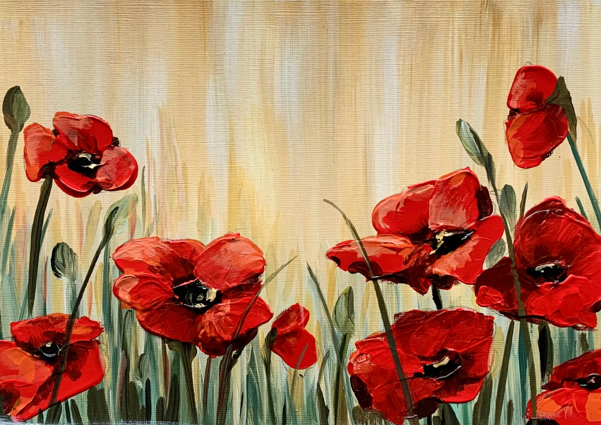 The new “Poppy” Art In A Box! You will have enough paint to create TWO versions of this poppy painting, your choice. All the supplies you need are included along with a step by step online instructional video. Learn how to create texture with the palette knife. Great for any skill level including beginners. Celebrate Spring by creating your very own painting.